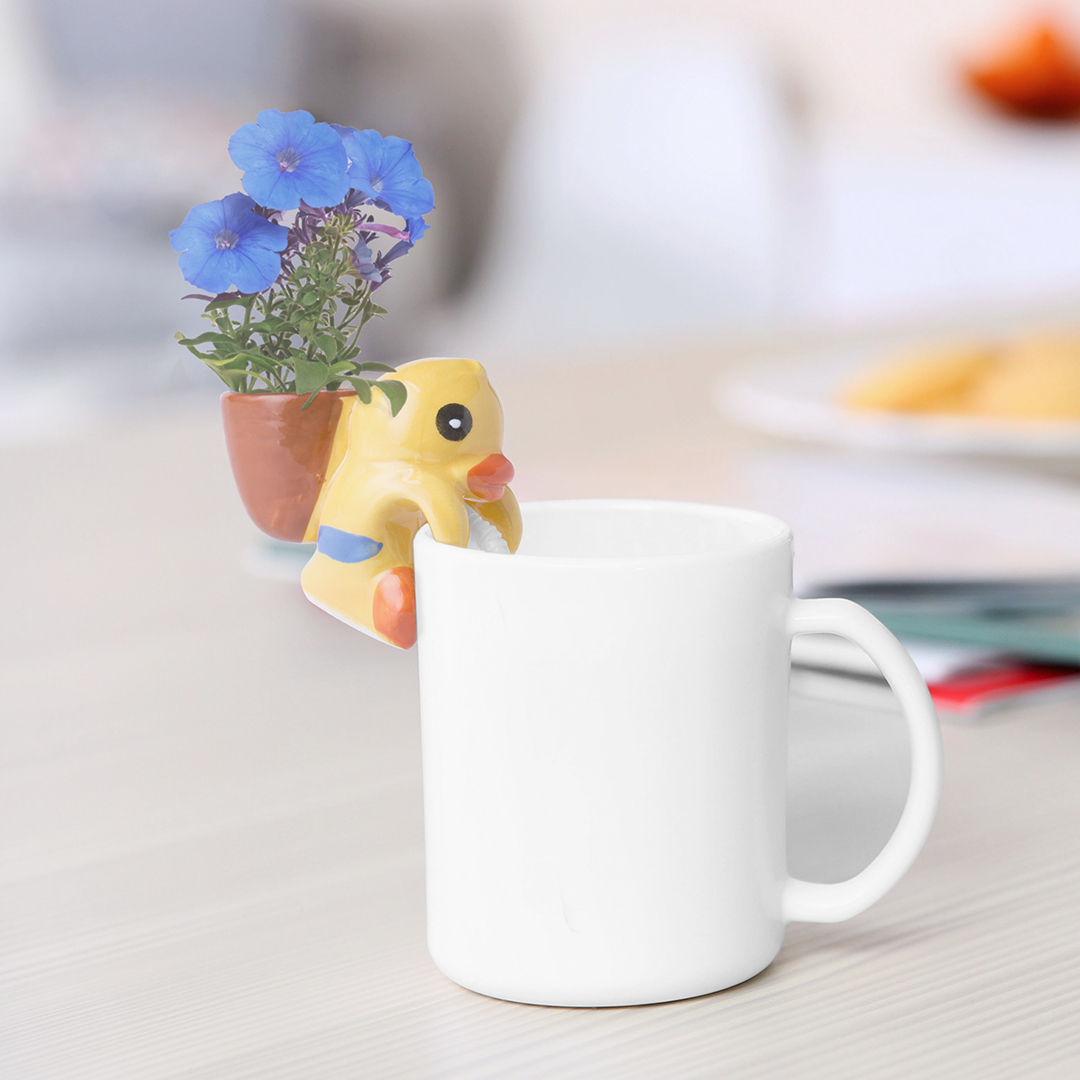 Maceta chupón en divertidos diseños de pato y gatito. Solamente hay que dejar la pajita en contacto con el agua para que la absorba y así florezcan unas espectaculares petunias. Cuerpo en cerámica, con 10-12 semillas incluidas. Presentada en atractiva caja de diseño.