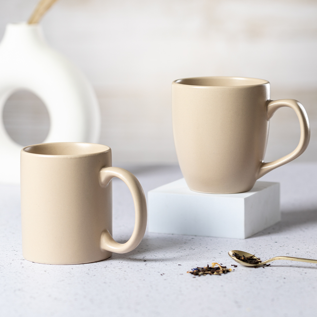 Taza de cerámica de 470ml de capacidad. De acabado mate y en color natural. Presentada en caja individual.
